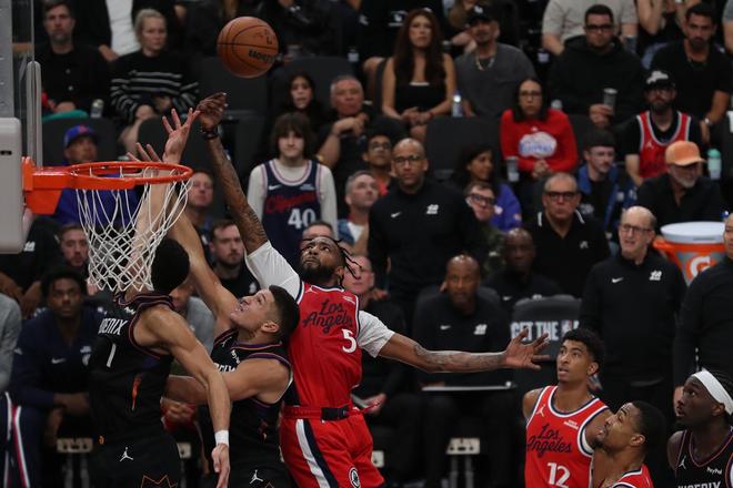 太陽(yáng)隊(duì)的布克上半場(chǎng)得到13分和7次助攻,吉萊斯皮得到12分;快船隊(duì)的祖巴茨和科林斯各得到9分。